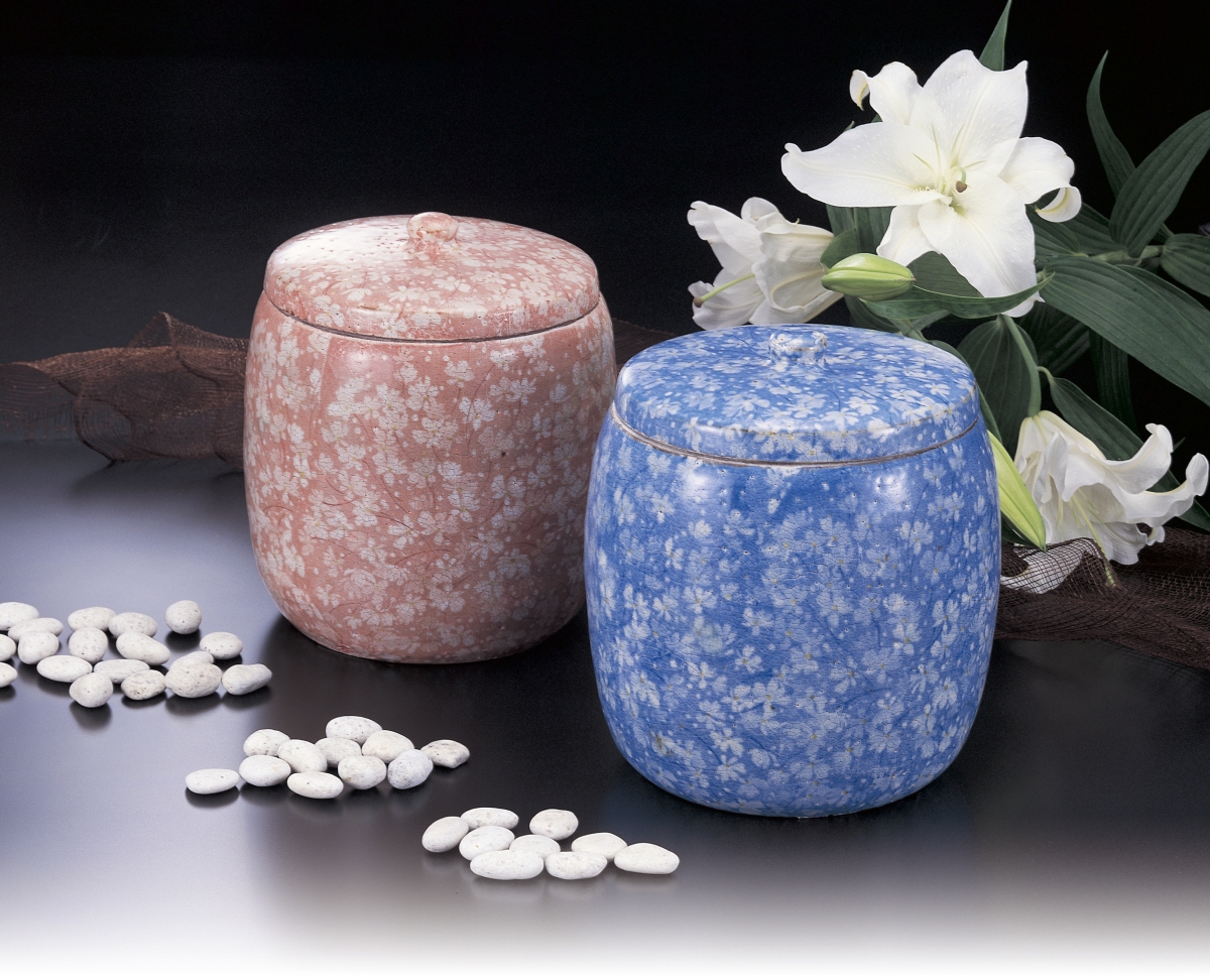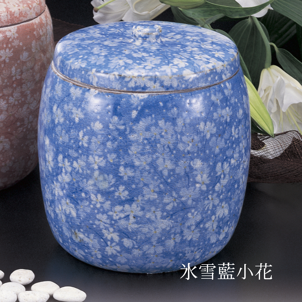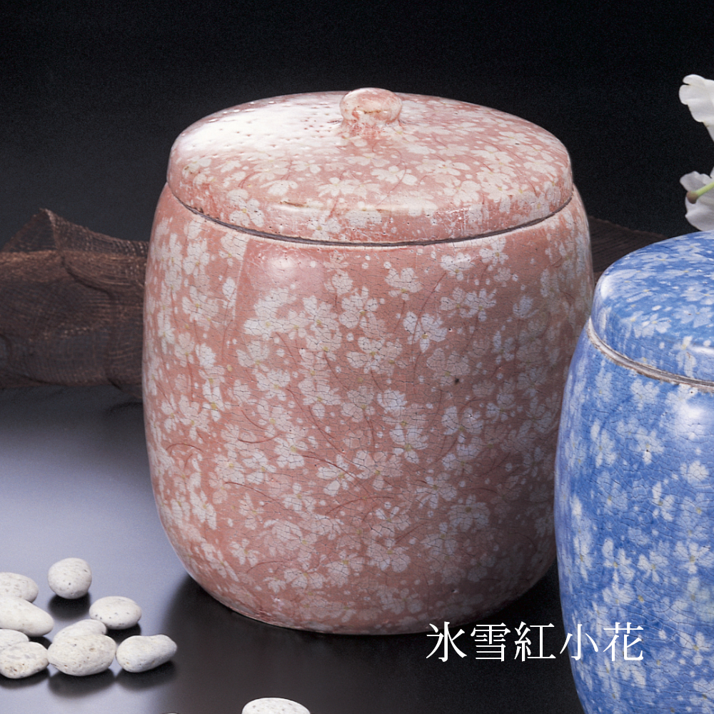 骨壺 葉月窯 氷雪藍小花 氷雪紅小花 氷雪墨花 氷雪若草 木箱付 5寸