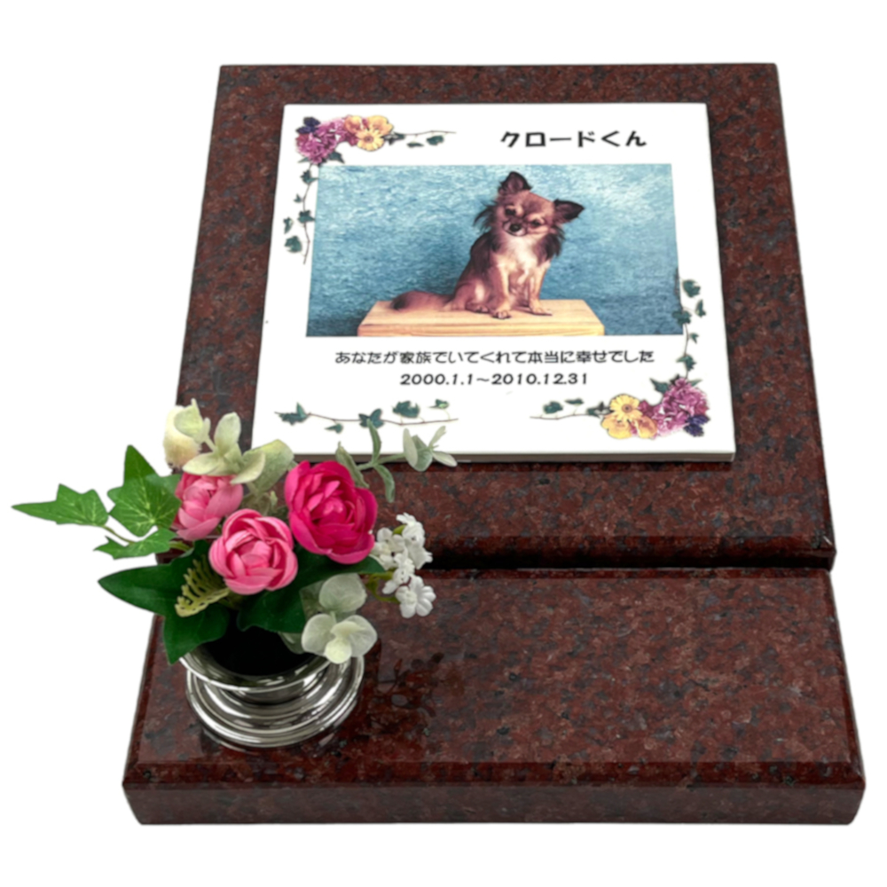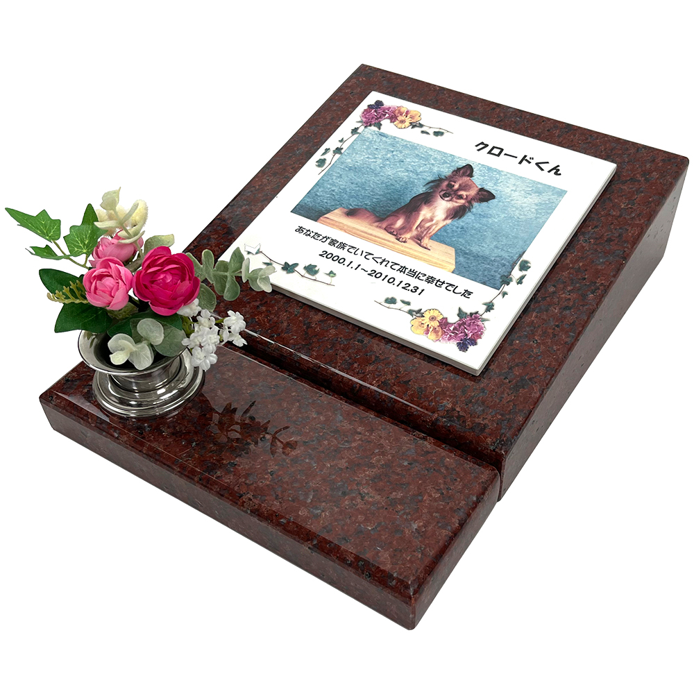 ペットのお墓プレート型(セラミックプリント・骨壺なし)ペット供養・手元供養・ペット位牌・陶板印刷・陶板写真・御影石さくら色・犬のお墓・猫のお墓 お盆 お彼岸 送料無料